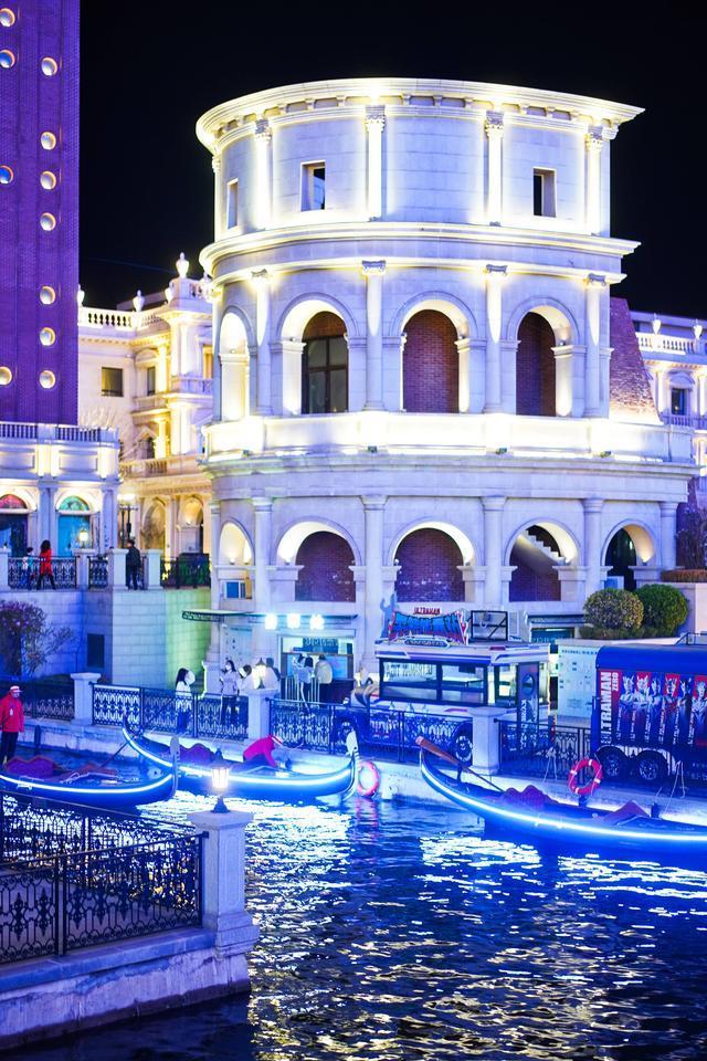 白天游船和晚上游船,感受是不一样的,白天里,你能清楚的看到色彩斑斓的欧式建筑,从栏杆到柱子,到屋顶的形状,无不在精细的复刻意大利的迷人风情。