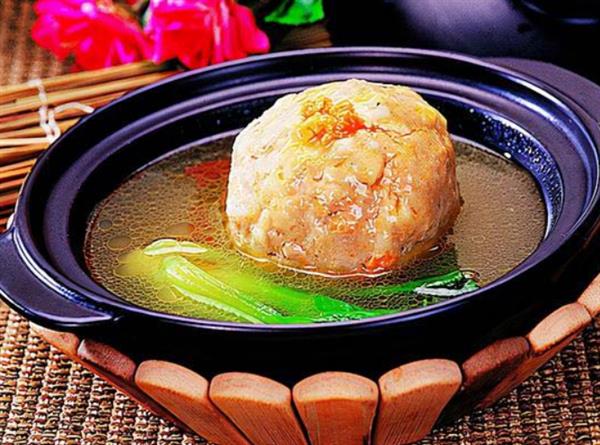 蟹粉狮子头在扬州当地是非常有名的一道菜是用三分肥七分瘦的猪肉再配上蟹肉和虾仔,蟹黄作为主要原料制作而成,在砂锅里焖煮耳熟,吃起来味道非常鲜香。