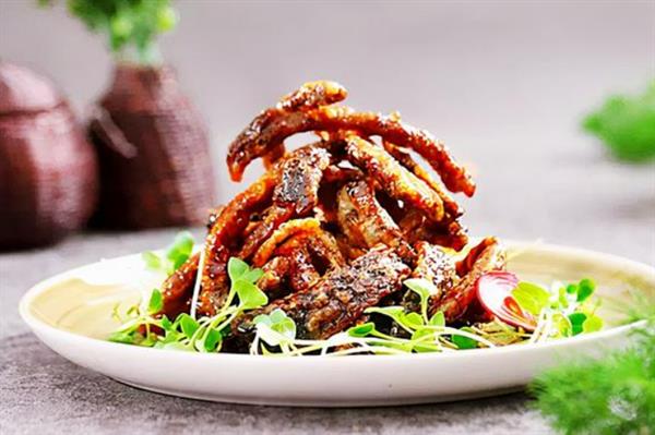 这道菜在江苏当地是非常有名的,传统菜是需要把鳝鱼切成丝经过油炸而成,吃起来口感松脆味道,有些酸甜。