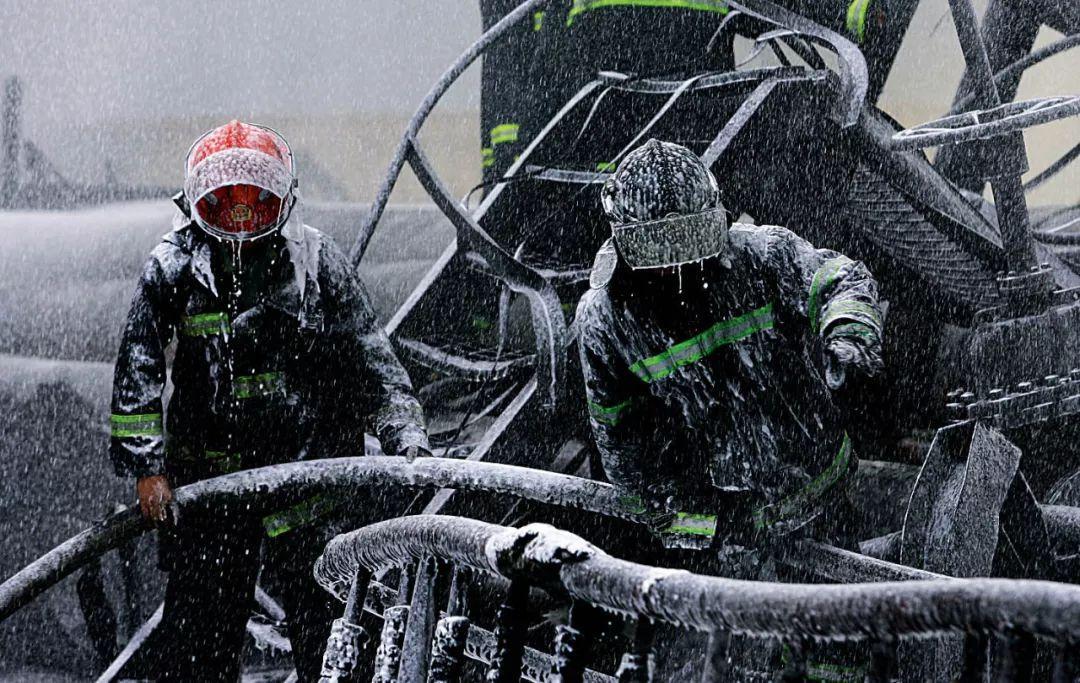 “我们坚持了3个多小时,35台消防车的泡沫和水全部都打光了。”这时他们迅速联系海上消防船,铺设接力管道,从海上取水,“但是铺设管道也需要一段时间,这时候也是火势反扑得最猛的时候。火最近的时候,离我们身后的液体化学品储罐只有10米”。