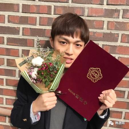 98年出生的白承焕今年18岁了,在毕业照中顶着一头咖啡色的短发,开心地拿着毕业证书和花。他还说自己也在追《鬼怪》,手上拿的是女主角池恩倬收到的“三神奶奶的棉花花束”,还开心地与老师合照。