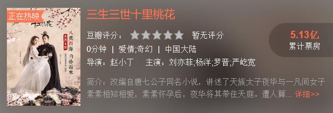 刚刚上映的《三生三世十里桃花》,也是票房势头很猛,现在已经突破5亿!