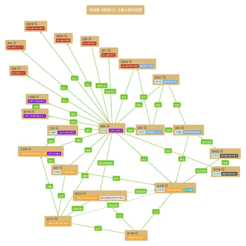 好了,这样梳理后,是不是清晰多了?《陈情令》的人物虽然众多,但每一个家族特征分明,脉络分支人物角色都一目了然,每个人物都有自己的人际关系和故事经历。看懂了人物关系图,追剧是不是就容易很多了?