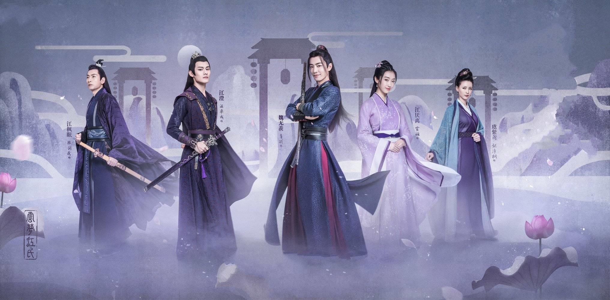 云梦江氏:在今天的湖北,家徽九瓣莲,府阺:莲花坞。家训“明知不可为而为之”,历来崇尚游侠风,作为家仆之子的魏无羡是性格上最能体现江家家训的人了。主要人物(依照海报从左至右):