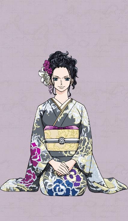腹黑的高冷女神罗宾,气质优雅,端庄魅力,成熟女性的代表,罗宾是一个可高冷可逗比可端庄的女神,穿和服的她非常有气质,非常漂亮,据说其新形象的颜值是和之国篇最美的。