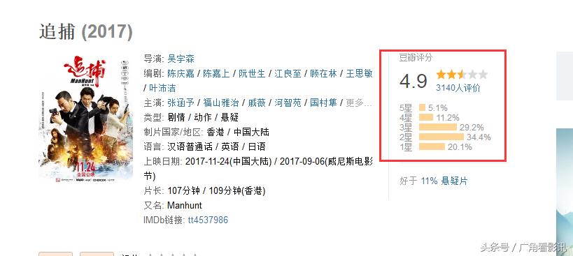 《追捕》豆瓣5.5跌至4.9,首映票房却大爆,段奕宏新作又显颓势!