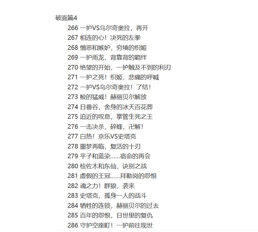 以下所列集数皆为主线,未列集数为原创!