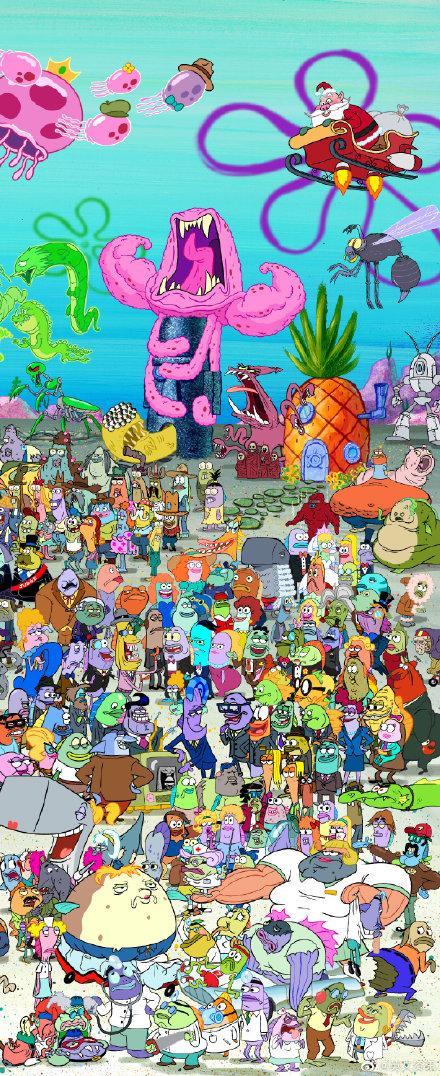 《海绵宝宝》迎来20周年,发布所有的“海绵宝宝”角色大集合海报,为海绵宝宝庆祝生日。20年中200多个出现过角色全部亮相,这个“大型海鲜市场”有没有令你眼花缭乱