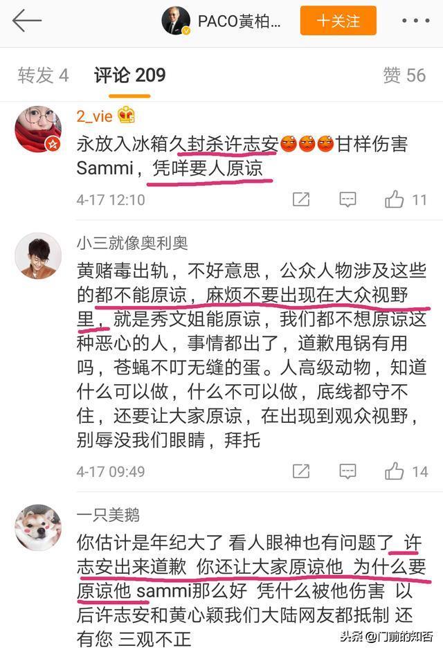 18号郑秀文发文表示原谅许志安,随后黄柏高发文感谢郑秀文:“好开心Sammi可以原谅安仔,好多谢Sammi,并希望大家大家给许志安多一次机会,他已经痛定思痛,时间会证明他以后会以行动重新做人”。虽然经纪人竭尽全力的帮许志安向大众求情,但是网友们并不买账,直言“绝不原谅,永久封杀”。看来经过这次的偷吃事件之后,许志安今后很难再翻身了。