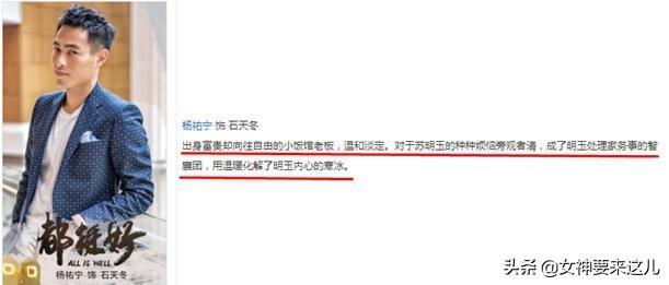 从人物介绍可以看出,石天冬不仅是个富二代,而且最终还替明玉解决了家庭纠纷。
