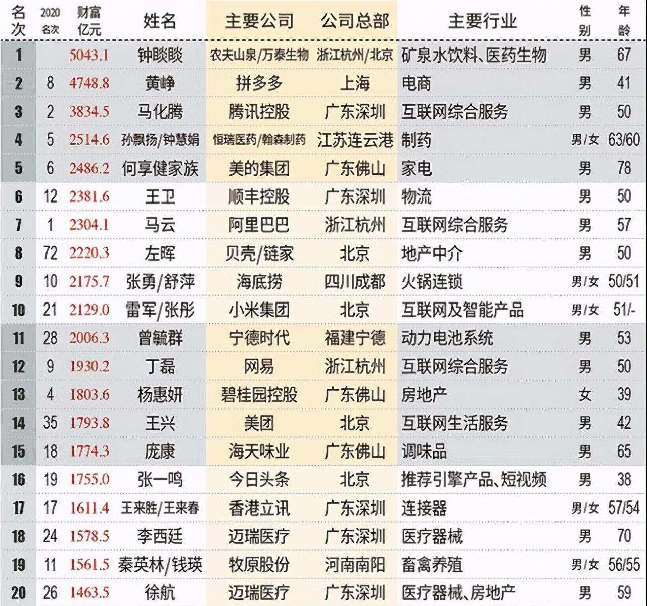 在2021新财富富豪榜上,农夫山泉的创始人钟睒睒财富值达到了5043亿元,位居第一名,成功赶超了马化腾和黄峥等人,而曾经风头旺盛的马云却跌出了前五,排在第七名,财富值约为2304亿元。从数据可以看出,钟睒睒的身价比马云还要多出2700亿元之多。当然也有人并不认准这个富豪榜。