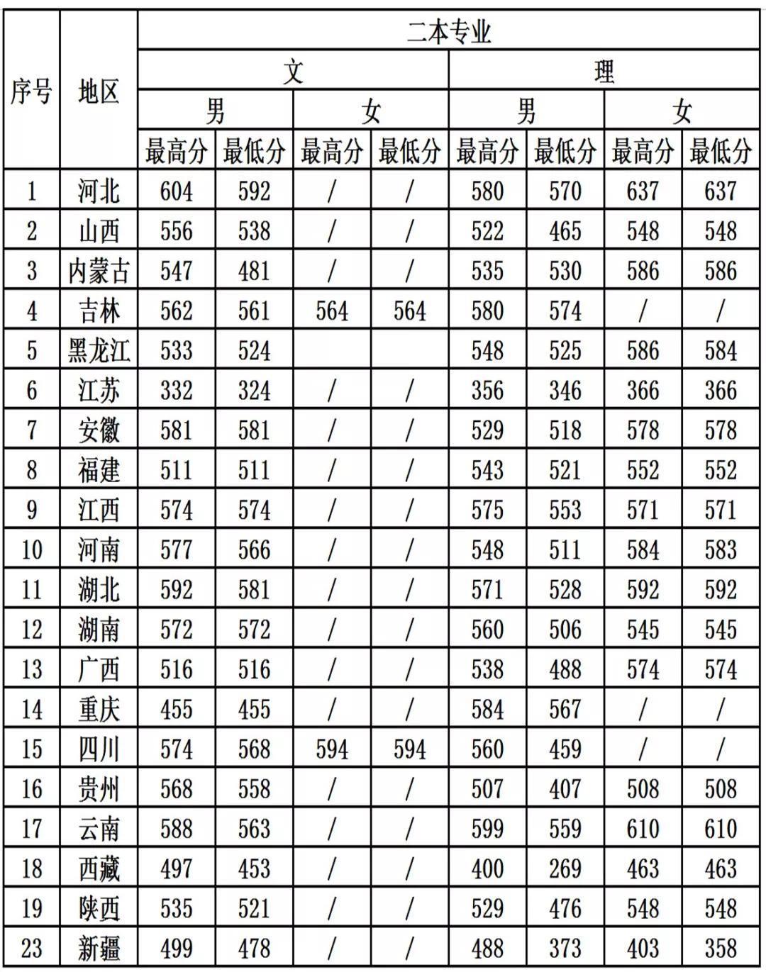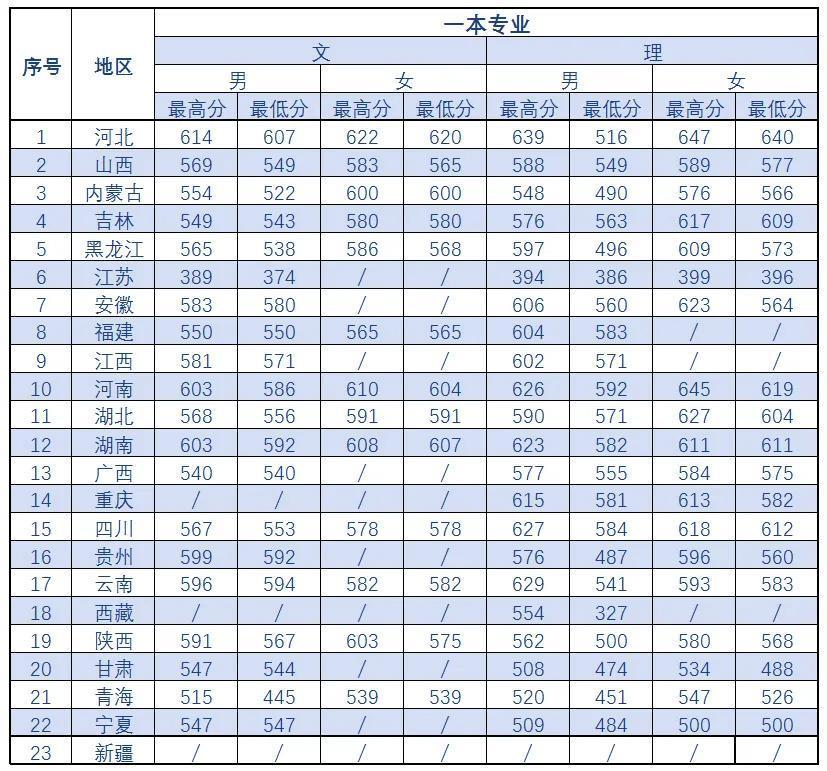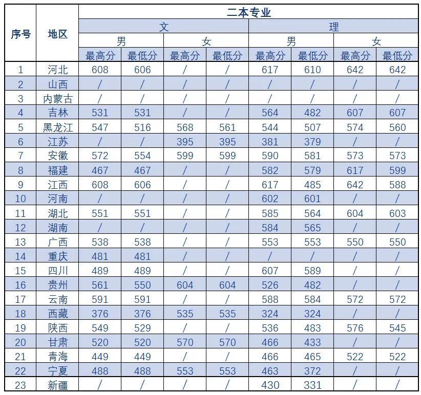 中国刑事警察学院近三年录取分数线