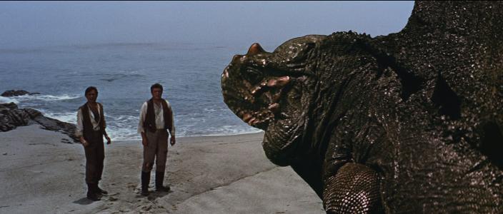 虽然2008年的翻拍版可能会更刺激(还有其他多版),选择1959年的《地心游记》(the Center of the Earth)的故事却有一个原因:鬣蜥扮演恐龙。(鬣蜥!有奇怪的电器粘在他们的背上)