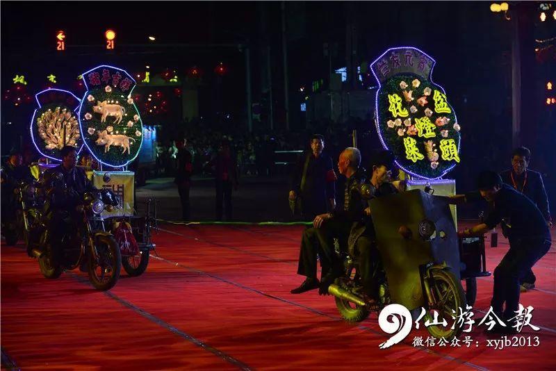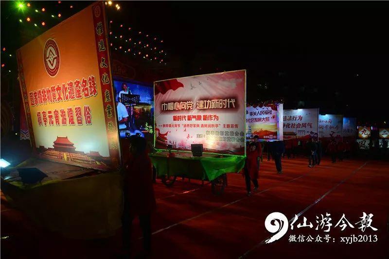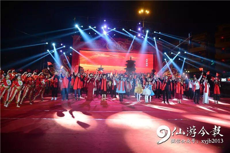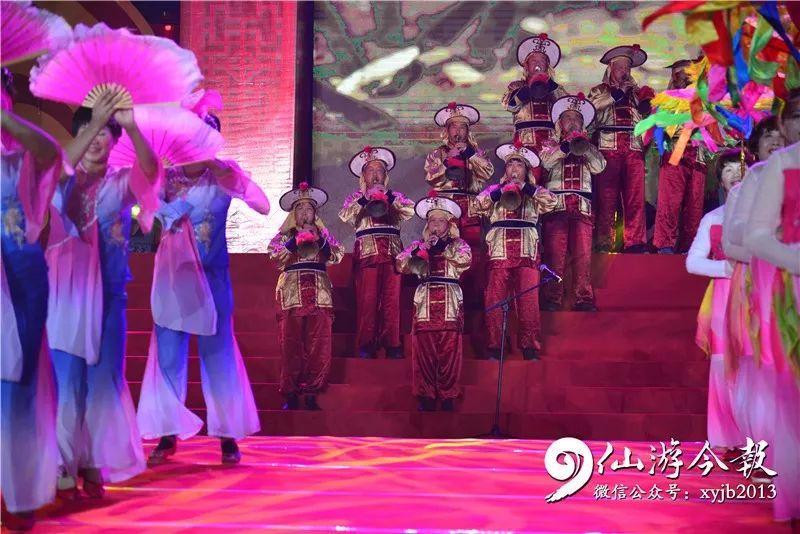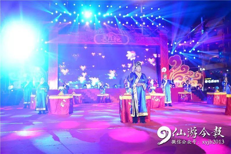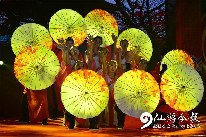当晚,现场气氛热烈,灯光璀璨,人山人海。开场文艺表演,合唱《我和我的祖国》,舞蹈《结枫为亭》,省级非遗民俗《皂隶舞》、《九莲灯》《大鼓吹乐悠悠》等节目,呈现给观众一场淋漓尽致的视觉盛宴。