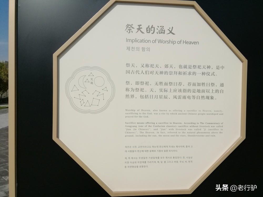 这是挂在铁围栏一周的引导牌,详细介绍了祭天:斋戒,陈设,省牲器,銮驾出宫,奠玉帛,进熟,銮驾回宫,几个步骤的具体内容。(本文不详述)