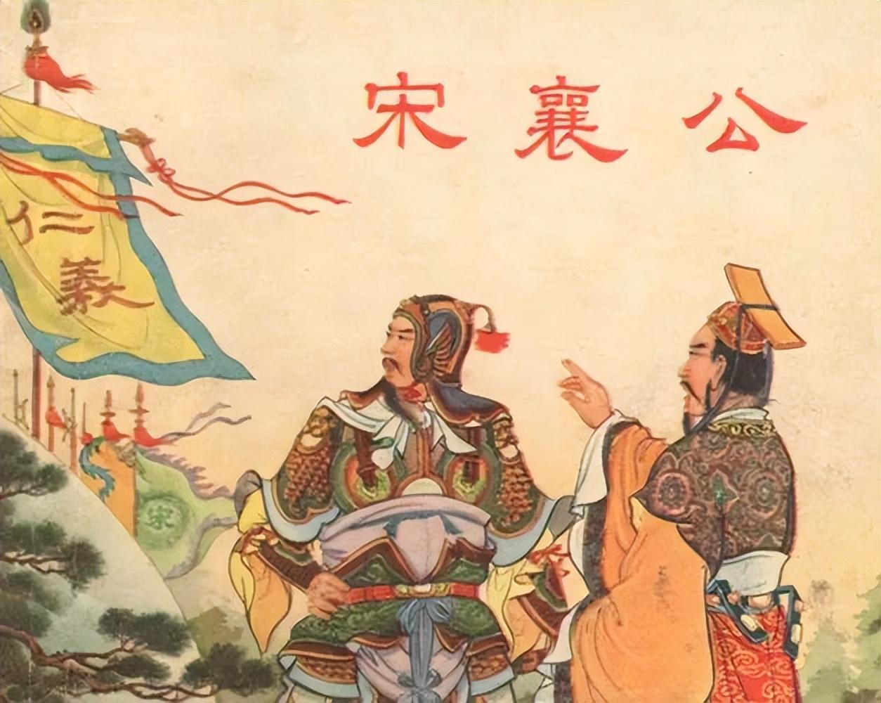 宋襄公雄心勃勃,想继承齐桓公的霸业,与楚国争霸。公元前638年,宋襄公讨伐郑国,与救郑的楚兵展开泓水之战。楚兵强大,宋襄公讲究“仁义”,要待楚兵渡河列阵后再战,结果大败受伤,次年伤重而死。