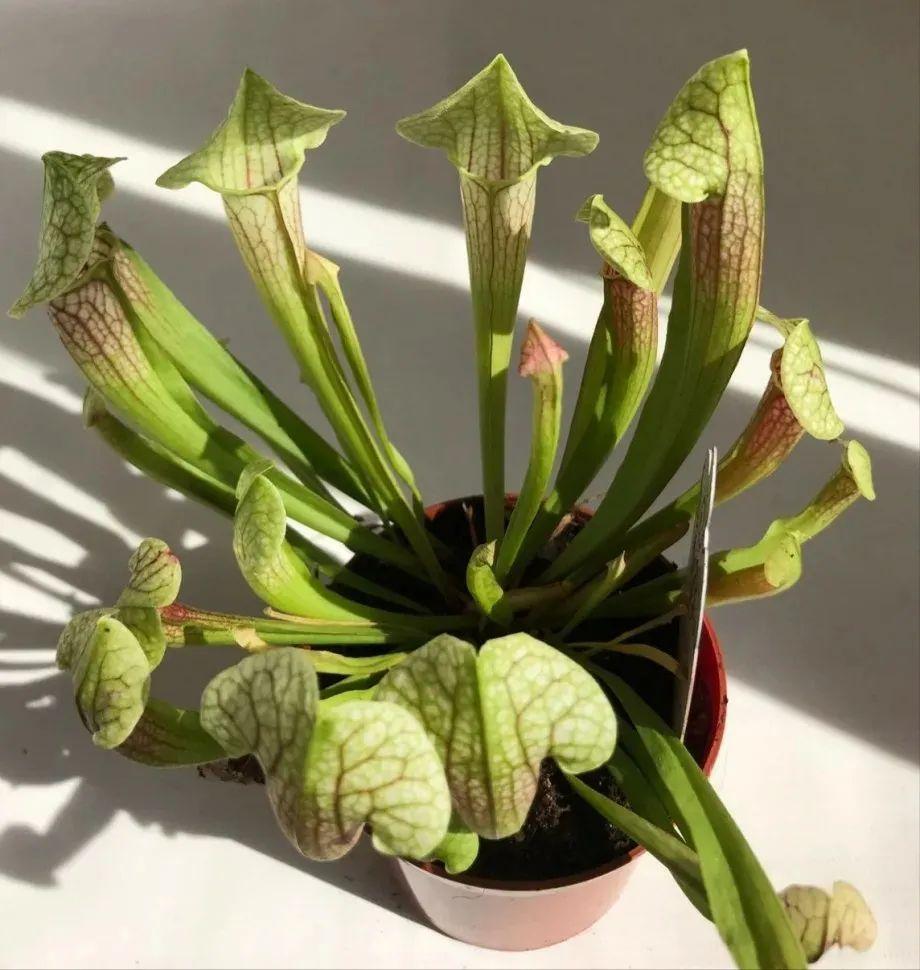 瓶子草的形态可能会和猪笼草的笼子比较相似,它们是比较容易养好的一类食虫草植物,它们大多是生长在酸性贫瘠的沼泽地中的,就喜欢常年温润潮湿的环境,对水分需求比较多,但是它们不喜欢过度暴晒,要注意多给柔和的光照,在夏天的时候要增强遮阴,避免过度高温。