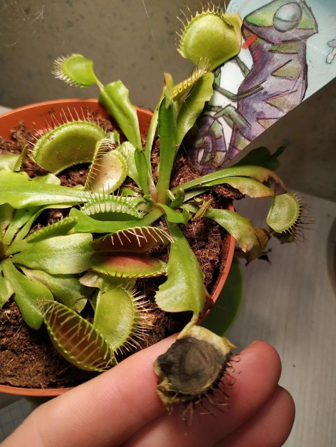 每一片捕蝇草的夹子寿命一般是在1~3个月,如果夹子快速枯萎发黄,那有可能是光照过度强烈,湿度不够,或者是水苔经常干燥,也要注意发现夹子发黄枯萎了,要及时清理掉,不要让它烂在水苔上面。
