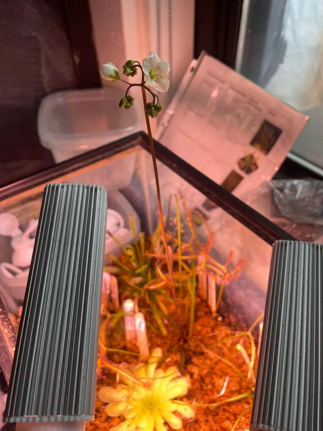 而如果是温带的捕虫堇品种,它们在春夏秋三季会快速生长开花,在冬天的时候叶子会枯萎,经过寒冷的冬季休眠之后,春暖后会重新发芽,比如常见的大角捕虫堇。