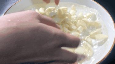相信很多人剥蒜的时候都跟我一样,先把外皮一点一点的剝开,然后把大蒜一瓣瓣的剥下来。最后用指甲一点点地把蒜皮剥掉,不知道大家有没有发现,这样剥大蒜特别的伤指甲,剝完之后我们还有最后一个步骤要做,那就是把蒜根部切下来,许多朋友在腌制腊八蒜的时候会发苦,吃起来口感不好,就是因为蒜根没有切下来。那有什么方法即可以快速剥蒜又可以直接省掉这个步骤呢?下面就跟大家分享一下非常好用的小妙招。这种小方法非常适合需要腌制很多腊八蒜的朋友。