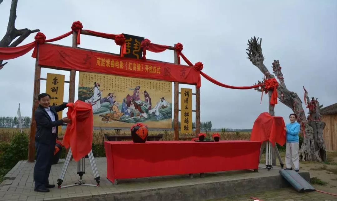 10月10日上午,高密首部茂腔戏曲电影《红高粱》在东北乡景区“十八里坡”红酒坊举行开机仪式。剧组演职人员参加仪式,市委有关领导参加仪式并讲话。