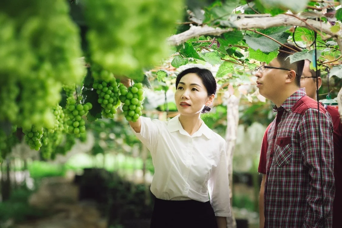 百果园集团总裁徐艳林考察广西一葡萄基地。
