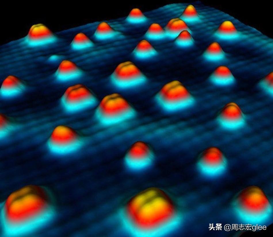 上图为水表面分子团簇的电镜渲染图像,像花朵的凸起部分为电子云,其中间的凹槽为氢键。