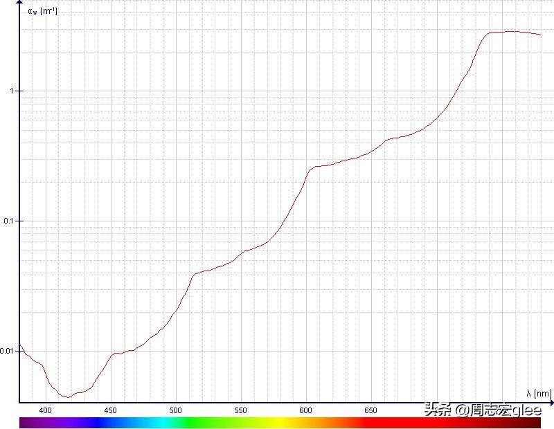 四、不被水吸收的光传输到我们的眼睛里,我们就认为水是透明的。水是否透明指的是水对可见光光谱的透明,本文也主要针对可见光进行分析。