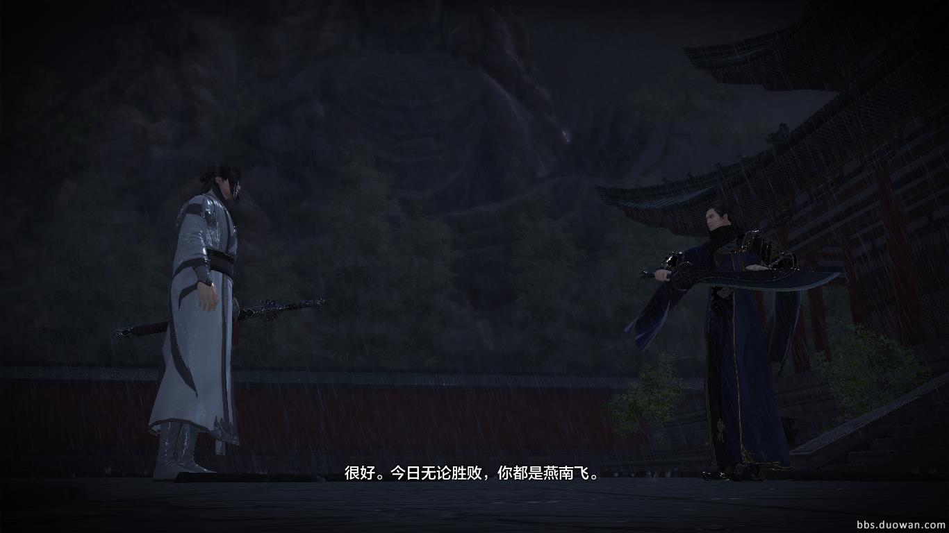 【醉月居】,真的是风水宝地,反派们还是很会享受的嘛,咳咳,同样,受命于四盟,玩家带着假情报来投靠青龙会在【巴蜀】的据点,一番例行的刁难后,见到了【醉月居】的守卫力量,而在最终,官方很贴心的让玩家第一次正视了不戴面具的,活着的(咳咳,活生生。)公子羽本尊,这位在江湖留下名侠威名的传奇剑客,初登场的公子羽开门见山的询问玩家是否因为燕南飞一事而来,而后就进去了我南飞哥的回忆杀剧情,简直看一遍就是泪,看一遍就心酸。燕南飞极力想忘掉的过去,就在公子羽的轻描淡写间,以影像的形式呈现在玩家面前,过场剧情并没有直接描写幼年的燕南飞的苦难,而是通过他和公子羽的初遇,交谈,争执,信服的寥寥数语一笔带过,但是在官方的【千人千面】中,其实那会的公子羽把燕南飞当成了候选人之一,所以指点他应走【心剑】之路,后来的加入青龙会也是顺理成章。这个在2L已经做过描述了,就不多余的再说一遍了。