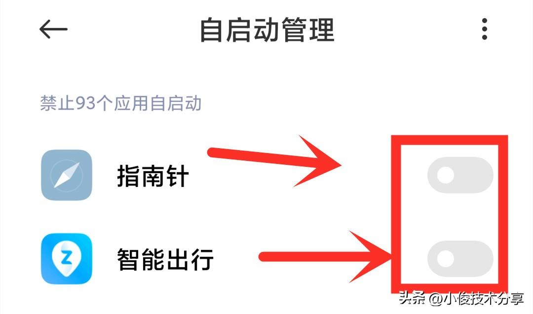 我们在【自启动管理】中,把不需要自启动的应用直接关掉就可以了!