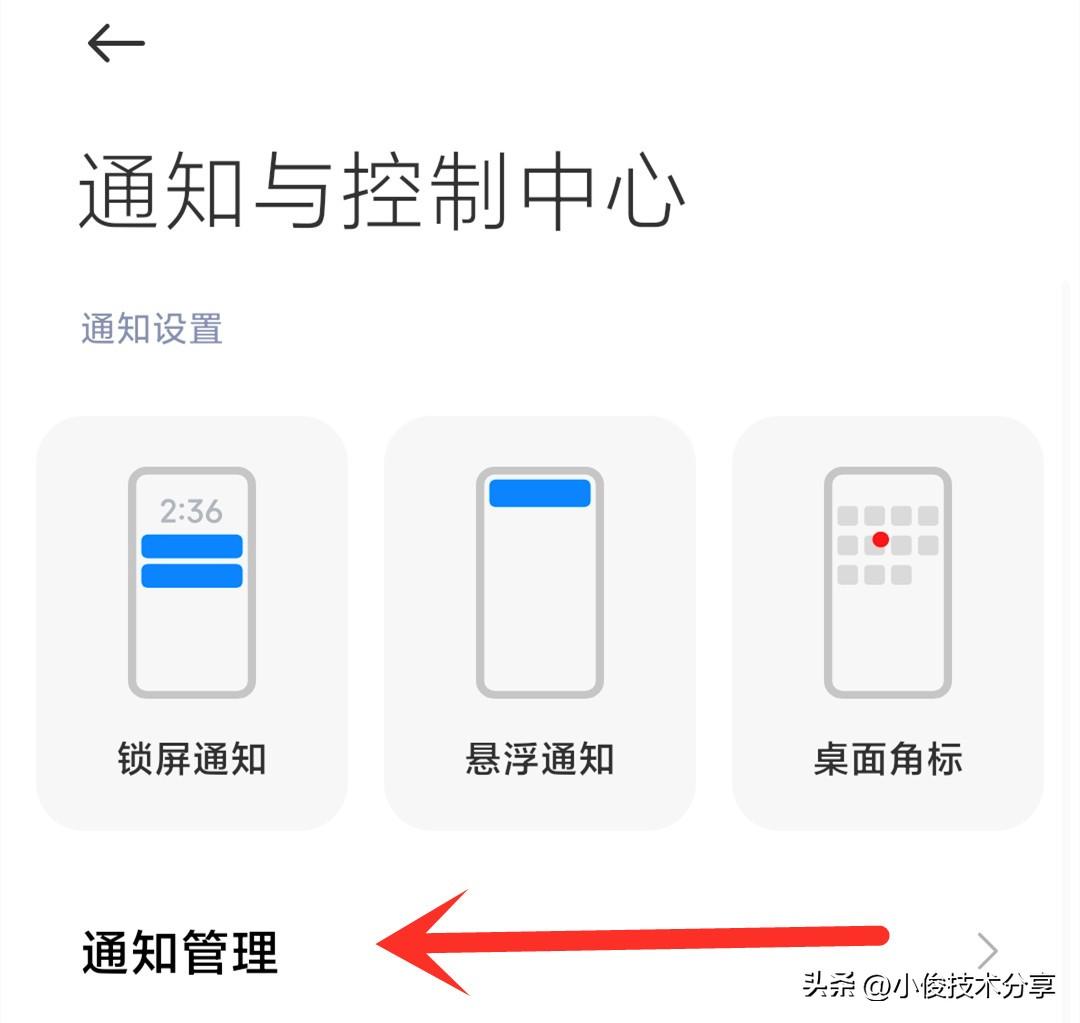 在通知管理中,找到不要通知的应用,把开关往左滑动,变成灰色即可!