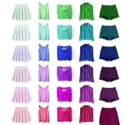 薄荷绿、草绿、墨绿/浅蓝、湖蓝、钴蓝/浅紫、深紫、紫红、大红等
