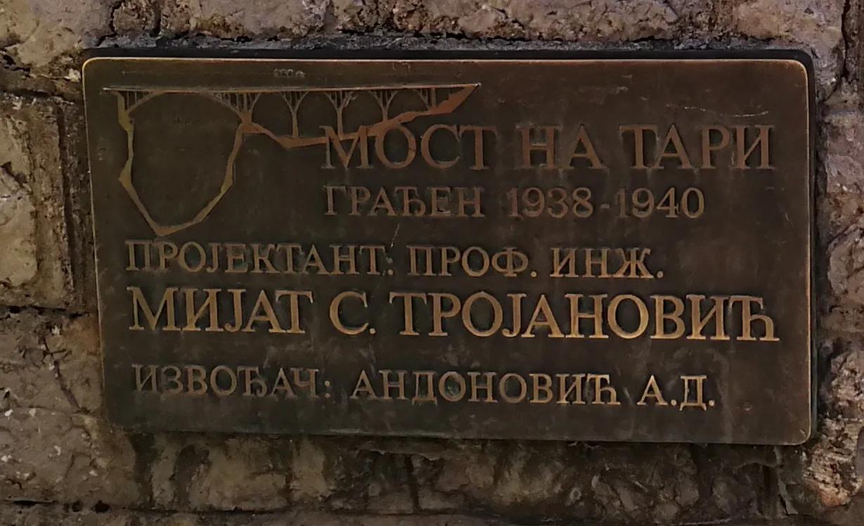 塔拉河谷在当地文字中写为MOCT(穆斯塔),镶嵌在桥头的铜牌,记载着大桥完整造型与建造和完工时间(1938-1940)