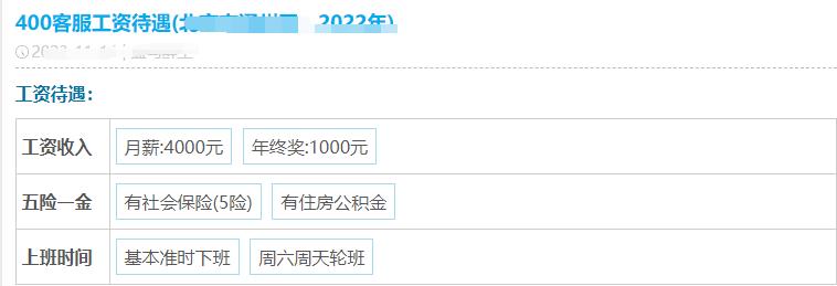客服工资待遇:月薪:4000元 年终奖:1000元。