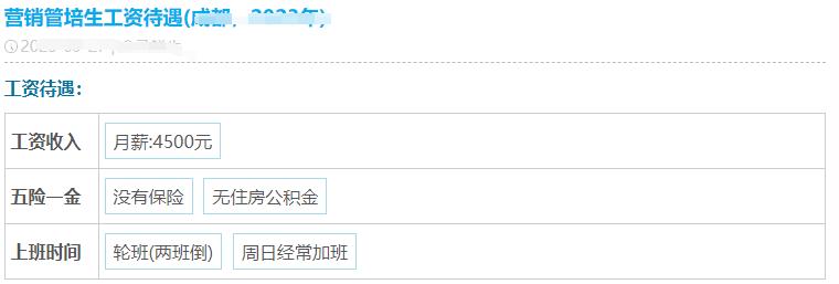 产品配送员:一般,都是属于三方派遣制度,总体来说是没得啥子苛刻你的,但是上面政策制度也是针对我们基层人员,有时候让人头疼,他们只是执行者,挺为难的。理货员:店长,副店长,大主管,小主管,也是有编制的,除了员工外还可以,正式工也行,4000到9000吧,员工也就一分力一分钱,干的多也挣的多盒马生鲜小二:小二,师傅,主管等。晋升机会不大,工资差异大,光小二就有好几个等级。应聘时要看你自己要不要求工资,不要求就是最低工资,无论你什么学历,干同样的活,你可能比新来的工资低,比他们干的活多,就是这么无语。