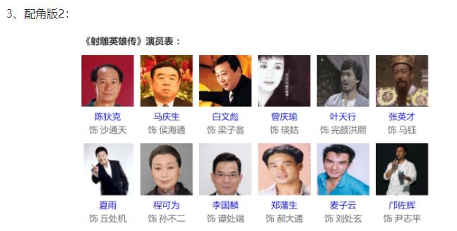 83和94两版《射雕英雄传》作为两部经典,都是TVB的作品 ,都在内地热播过,由李添胜监制,张智霖、朱茵、罗嘉良、关宝慧主演。由李添胜监制,张智霖、朱茵、罗嘉良、关宝慧主演。这版朱茵饰演的黄蓉也是非常经典,应该也是最忠实原著的一个版本。