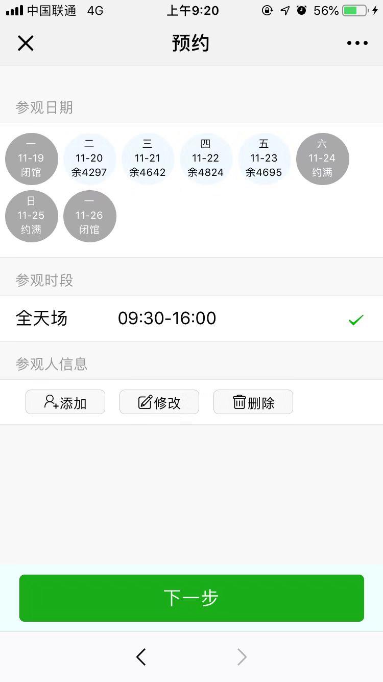 明日(11月20日)可以免费预约11月20日至11月27日(下周二)的门票