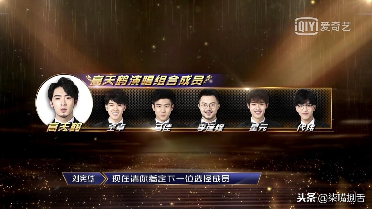 高天鹤战队成员包括仝卓、李彦锋、马佳、星元、代玮。高天鹤这一组其实也还行,仝卓、马佳、星元都不错,代玮和李彦锋虽然之前没上过公演舞台,但是这一期唱的也不错。但是吧,这一组某些被高天鹤各种夸奖并带上舞台让他站C位的成员戏也是不要太多,真的很败好感。