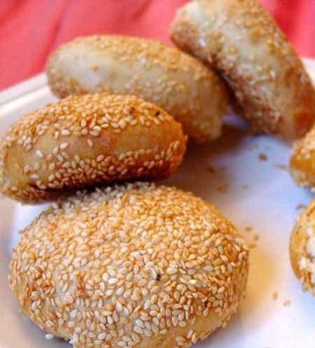 材料和制作:蟹壳黄的制作原料主要包括糯米粉、白糖、芝麻、油等,制作过程中先将面糊揉成团,再包入甜馅或咸馅,最后烤制而成。