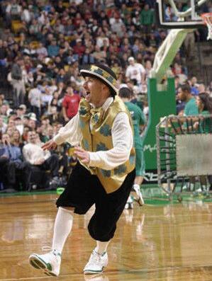 吉祥物:小妖精是凯尔特人队的传统吉祥物,是由一个矮小的老人扮演的爱尔兰小妖精。凯尔特人队所在的新英格兰州,过去是美国人从英国移民而来落脚的第一块土地,所以这里到处还充满着北爱尔兰的习俗,包括绿色三叶或四叶酢浆草、穿绿衣绿裤并把河水染绿的大游行等都是例子。而凯尔特人队徽的那个穿着绿西装灯笼裤的绿衣小老头,其形象就来自于爱尔兰古老童话传说中的矮人小精灵"leprechaun",凯尔特人的吉祥物"拉奇(Lucky,幸运)"也就是一样的绿色小矮妖。小妖精作为球队的标志已经有了50多年的历史,但直到2003-2004赛季,凯尔特人队的吉祥物换由一位28岁的国际体操选手布勒斯特扮演,才第一次在表演时以真面目示人,他为球迷表演眩目的杂技扣篮和各种特技动作。