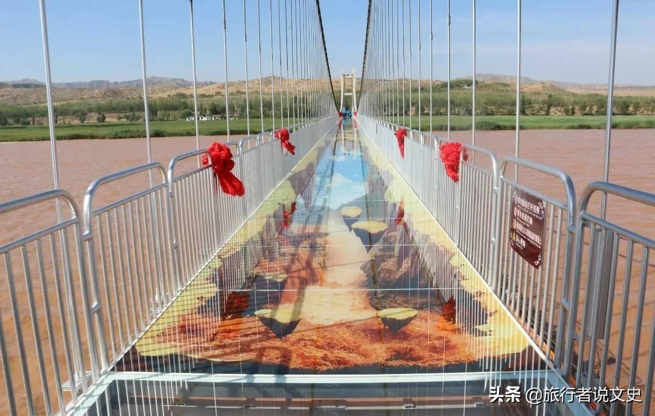 黄河玻璃桥位于中卫市沙坡头区沙坡头旅游景区内,是黄河上唯一的大型3D玻璃桥,全长300余米,其中铺有玻璃的桥面约210米,是我国长度最长的玻璃桥之一。