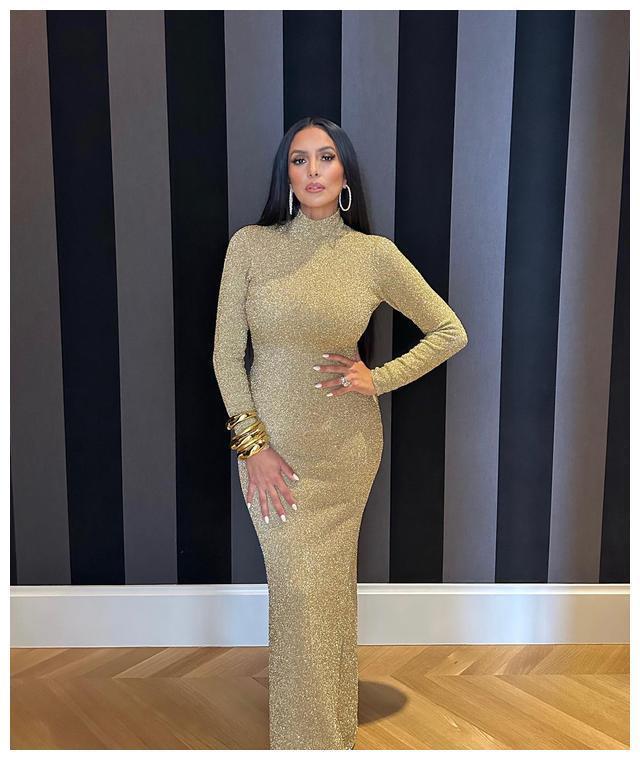 科比遗孀瘦了太多!瓦妮莎穿小金裙美成女神,这是瘦了好几十斤啊