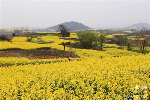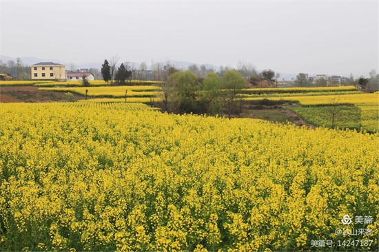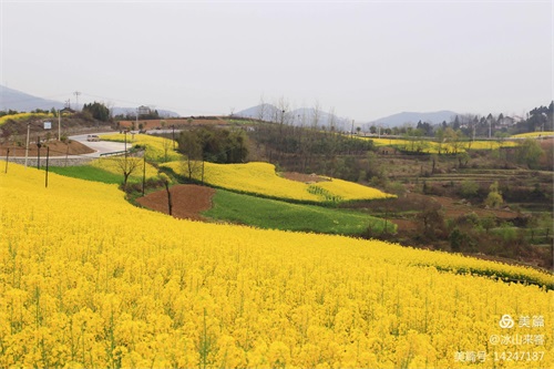 南郑区华燕村村口,这里有一座不高的小山,从外型上看,像一个马鞍,所以叫它马鞍山,登上马鞍山,极目远眺,周围平原上的油菜花海和种在山坡上的油菜花海一览无余,是拍油菜花海的理想地方,站在山顶,只见大地黄绿相兼,村庄星罗棋布,道路交错纵横,看山坡上的油菜花海,线条流畅,层层叠叠,远处山峦绵延起伏,走进油菜花海,香气扑鼻,让人心醉,真是一幅美丽的风景画。