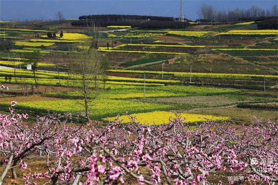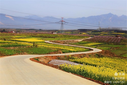 城固县文川镇毛岭村拍摄的,这里有一片桃花,还有油菜花,弯弯曲曲的马路从中间穿过,别有一番韵味。