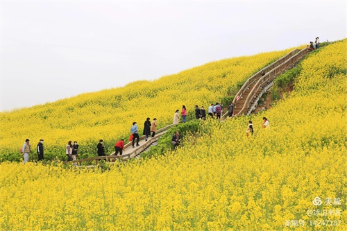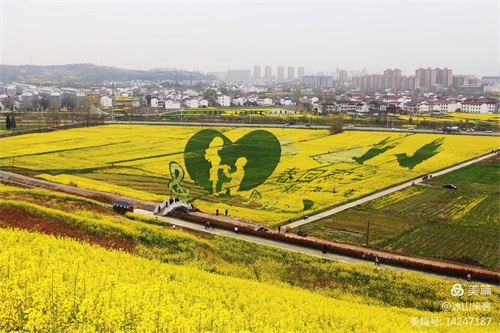 洋县龙山的油菜花海,由于其地理位置独特,沿着修建的观光步道向不高的山上走,随着高度升高,视野也逐渐开阔,当你登上山顶,极目远眺,一边是群山连绵起伏,并有金黄色的油菜花田镶嵌其中,另一边是洋县县城,这时在山脚下的一片油菜花海映入眼帘,在油菜花海里种植了彩色图案,并有“春回鹮乡,相守一生”几个大字,精美的图案,特别引人注目,沿着观花环线走一圈,让人心旷神怡,美不胜收。