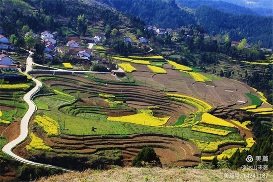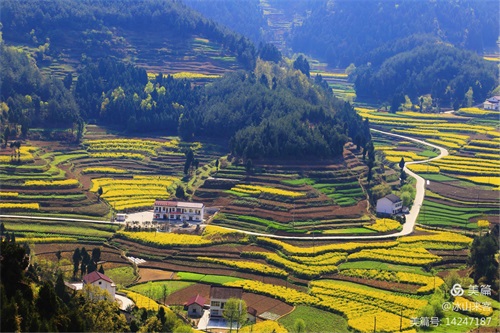 洋县五岭观花环线是油菜花海观花环线,开车走上一圈,看到的油菜花海基本都是丘陵地带的油菜花海,绵延起伏,线条丰富,层次分明,真是另一种感受,这条线路我每年都要走一圈,道路蜿蜒曲折,柏油马路宽阔平坦,开车走一圈,美景尽收眼底,真是一条踏青赏油菜花的好线路。丘陵地带的油菜花海,随着地面的起伏,油菜花海也是层次分明,这里是红土地,也是朱鹮的生存之地,生态环境良好,民风淳朴,村民善良,来到这里,让你心情舒畅,身心放松。