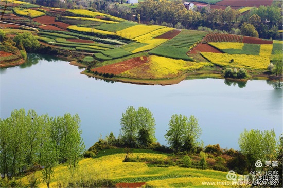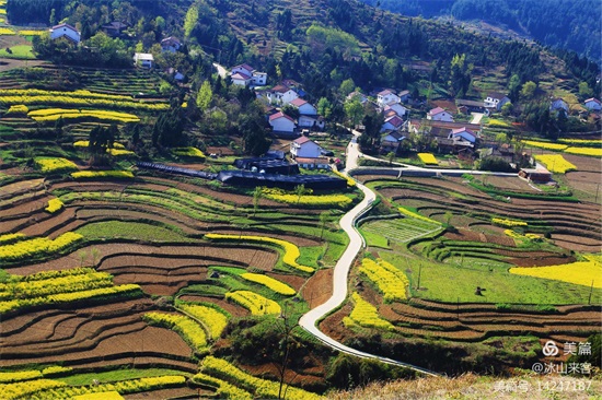 勉县漩水坪村是油菜花海观赏点,这里属于汉中勉县新铺镇,位于观山南麓,南北两山夹峙形成独特的地理环境,犹如一个微型的盆地,从盆沿到盆底梯田层层,绿树葱葱,民居隐隐。从山谷到山腰一直延伸,一层一层,像漩涡一般扩散开去,爬到村北面观山顶上的白鹰冠眺望这里的梯田,才能看清楚全貌,梯田绕着山漩,也跟着水漩,层叠之间有田埂线条曲折交错,其间形成光影的明暗转换,如同一张油画,让人流连忘返,美不胜收,吸引了许多摄影爱好者前来拍摄休闲。