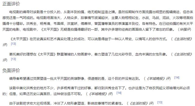 所以,太平天国运动IP尺度把握不好,就可能拍出一部失败的作品。而且,观众也是明显的两极分化。国内外的导演一般还真的不敢轻易触碰。大家说是不是?(END)
