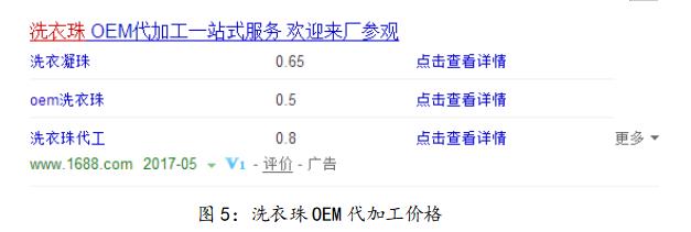 写到这里,突然想到“水灵珠”的生产成本问题,又去找了万恶的度娘,得到了下面的图5:洗衣珠OEM代加工价格。