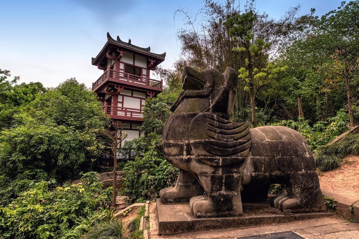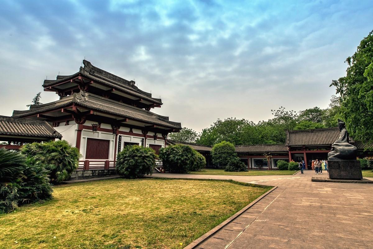 在万卷楼庭院正中,有一尊陈寿怀抱竹简、手执毛笔的青铜塑像。那是陈寿著《三国志》时的雕像。雕塑形态逼真,神韵飞扬。铜像周围以黑色花岗石铺成圆形鉴池,寓意“以史为鉴”。庭院展厅正中,青年陈寿半身铜像布衣高髻,目光炯炯有神。展厅上方“并迁双固”的匾额,源于晋人常璩在《华阳国志》一书中对陈寿的高度评价,他赞誉陈寿所著《三国志》的史学成就可与司马迁、班固比肩。